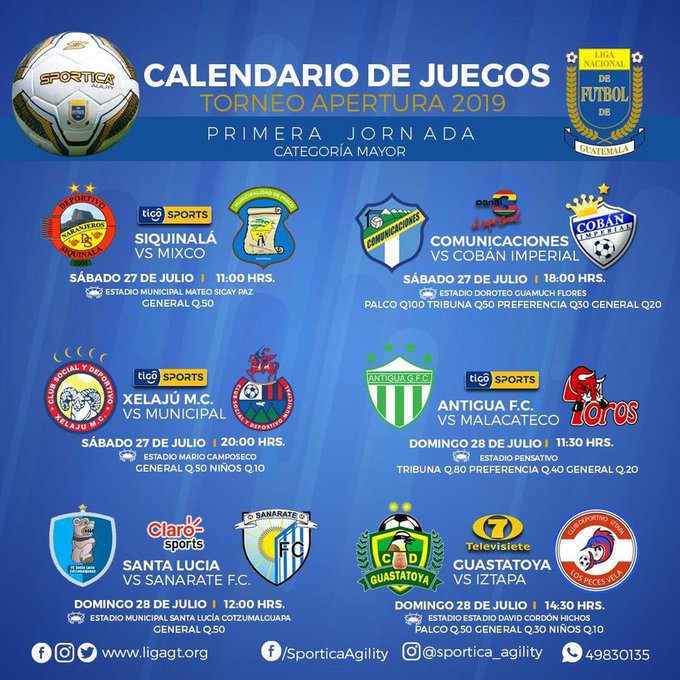 #Apertura19 | Primera Jornada— Futbol Guatemala (@guatefutbol) July 27, 2019